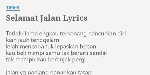 Selamat Jalan Lyrics By Tipe X Terlalu Lama Engkau Terkenang